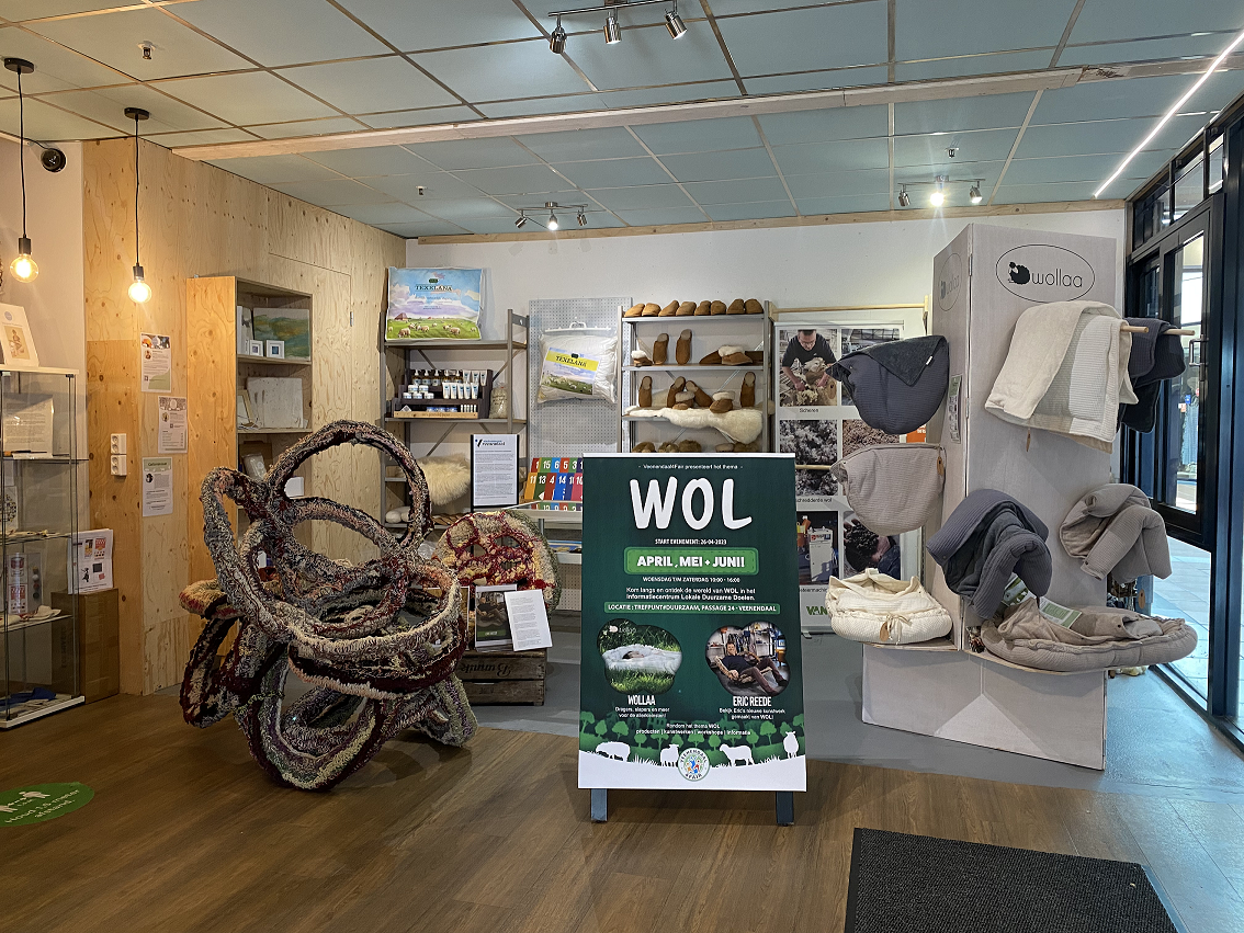 Het thema Wol zal tot eind juni 2023 te zien zijn in het Informatiecentrum Lokale Duurzame Doelen, Passage 24 / hoek Tuinstraat in Veenendaal.