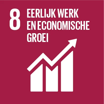 Goal 8 – eerlijk werk en economische groei. Groei is pas duurzaam als kapitaal, arbeid en grondstoffen verantwoordelijk worden ingezet.